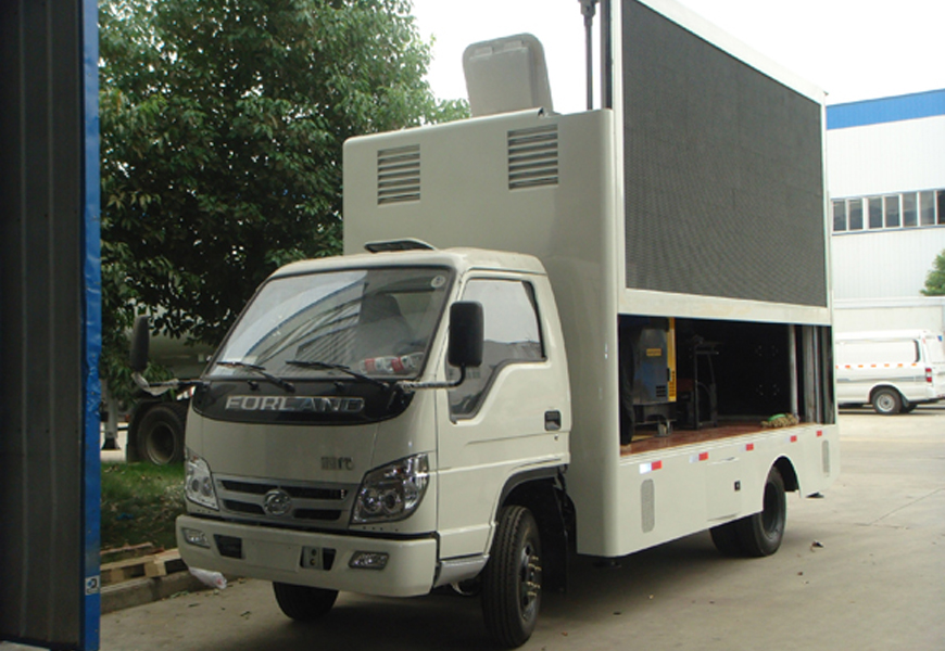 LED廣告宣傳車(chē)一般用于產(chǎn)品推廣、品牌推廣、選秀活動(dòng)、銷(xiāo)售現(xiàn)場(chǎng)展示、體育賽事、演唱會(huì)、音樂(lè)會(huì)等??梢赃M(jìn)行現(xiàn)場(chǎng)展示、交流、互動(dòng),宣傳范圍廣泛,可以有效獲得最大的廣告?zhèn)鞑バЧ?br /> LED廣告宣傳車(chē)標(biāo)準(zhǔn)配置:一側(cè)全彩屏,另側(cè)帶字幕廣告燈箱,5cm復(fù)合鋼架箱體,外冷扎板內(nèi)鋁板,木地板,高檔地板革,4個(gè)液壓支腿,高精度單側(cè)屏舉升,機(jī)電一體化控制,循環(huán)通風(fēng)降溫系統(tǒng),安全智能內(nèi)外網(wǎng)配電切換系統(tǒng),高性能靜音柴油發(fā)電機(jī)組;電腦智能2-7副燈畫(huà)切換;全防水高度P10真彩車(chē)載LED精品屏,千兆流媒體控制系統(tǒng)。