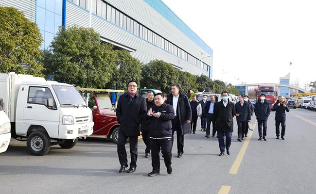 王志才總經(jīng)理一行領導及負責人,不畏凜冬寒冷,先后步行參觀程力(曾都)汽車工業(yè)園、程力南郊汽車裝備制造工業(yè)園兩大基地。來賓們看產(chǎn)品、下車間、問工藝,無一不細致入微,調(diào)研考察工作扎實認真高效。